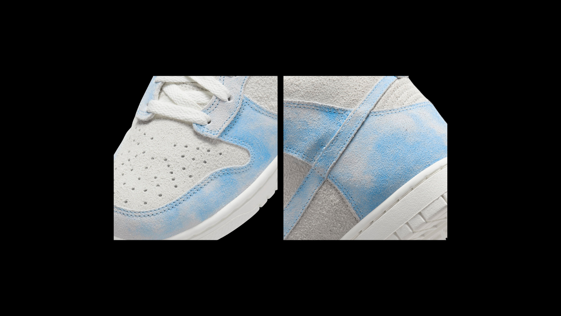 Súbete a las nubes y lleva tu ajuste a nuevas alturas con esta nueva versión del Dunk. Inundado en azul y blanco, la parte superior de gamuza recibe un impulso de ensueño con una estética teñida de nubes. Los acentos de gamuza peluda, que te enraízan al astral y te brindan vibraciones despreocupadas que miran el cielo de espaldas, agregan un efecto aireado, lo que hace que tu estilo fuera de la cancha flote. Así que ponte los cordones, el cielo es el límite.