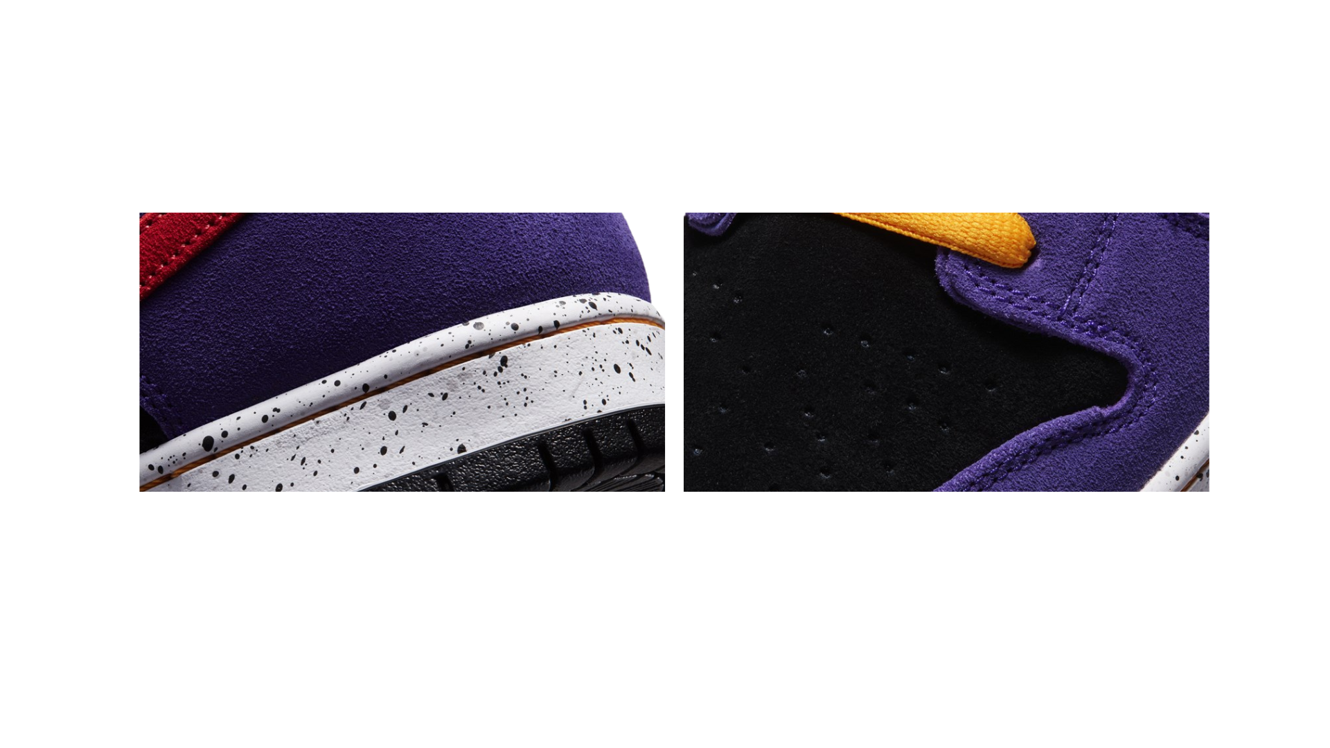 Cuenta con superposiciones de gamuza negras, morada y un Nike Swoosh rojo.