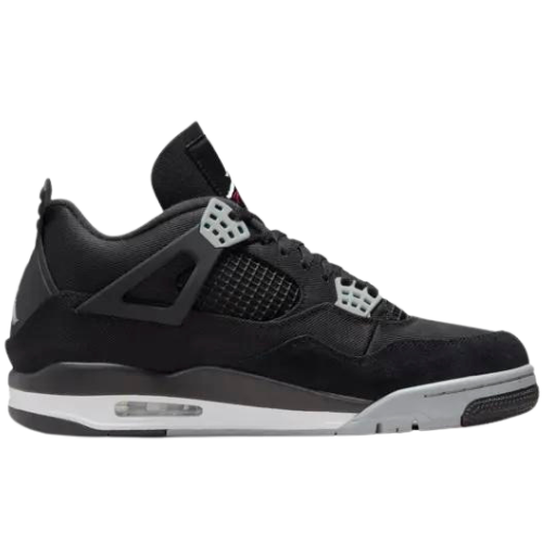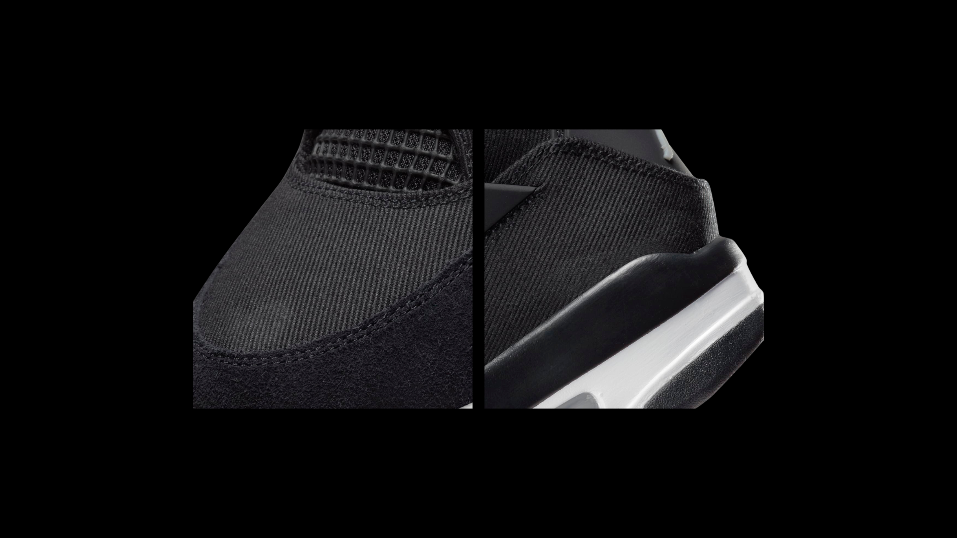 Consíguelo mientras puedas: el AJ4 en lona negra. Este diseño ágil de eficacia comprobada se lanzó por primera vez en 1989 y ha cautivado a las masas desde entonces. Los detalles en gamuza elevan tu estilo y los detalles en acero claro en los ojales, la entresuela y la marca añaden un contraste que todo estilo necesita.